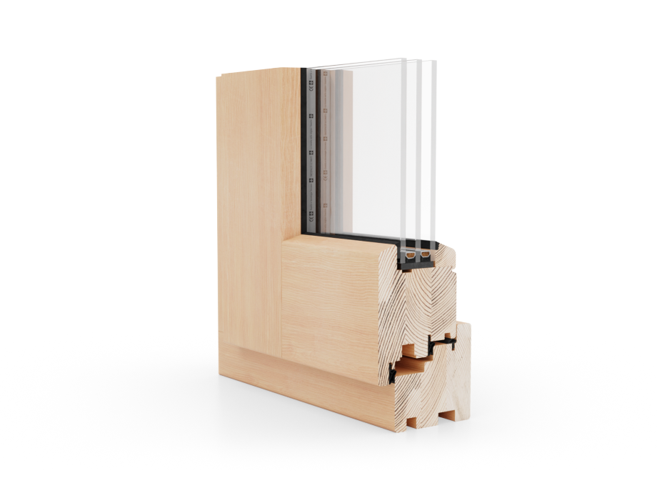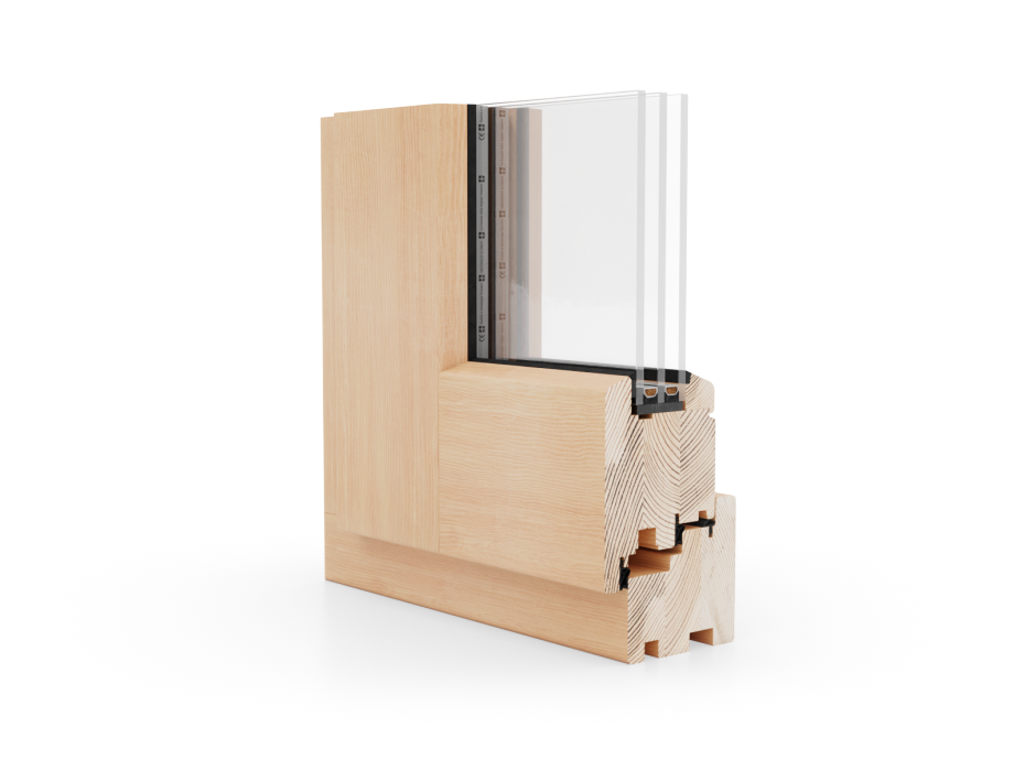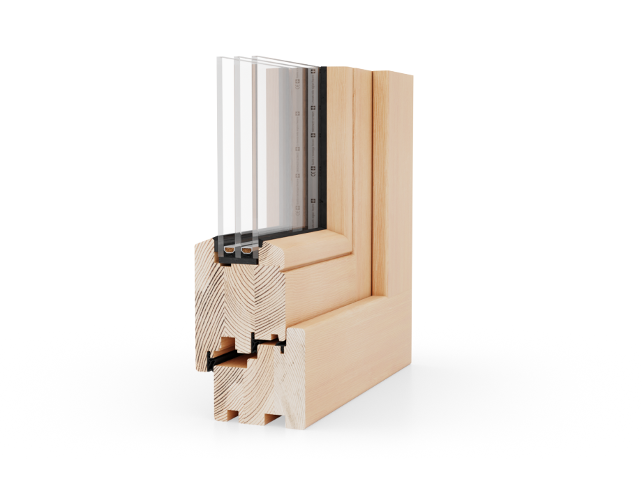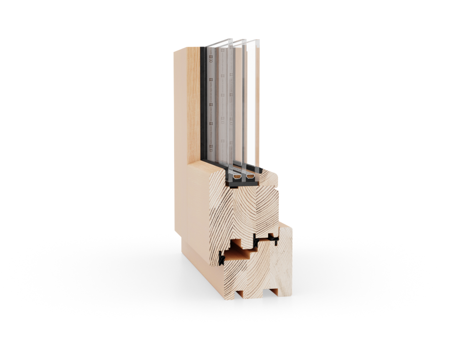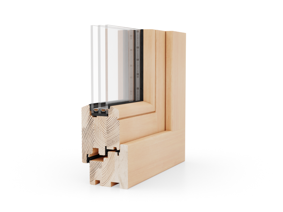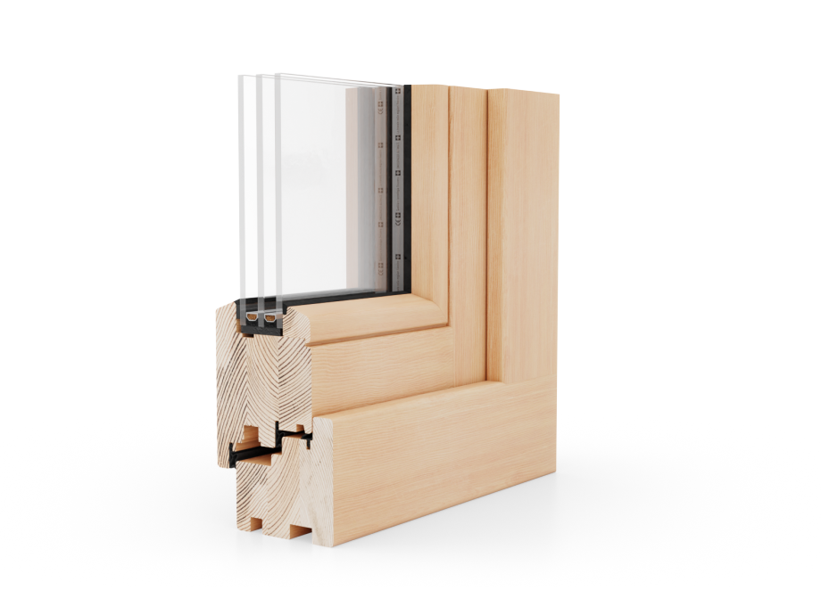 The presented windows are made of ethically sourced raw material, which is subject to special processing to improve its parameters. To create profiles, wood glued from several layers is used to obtain better static parameters and increase its durability.