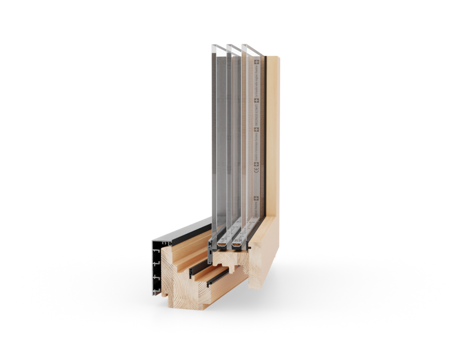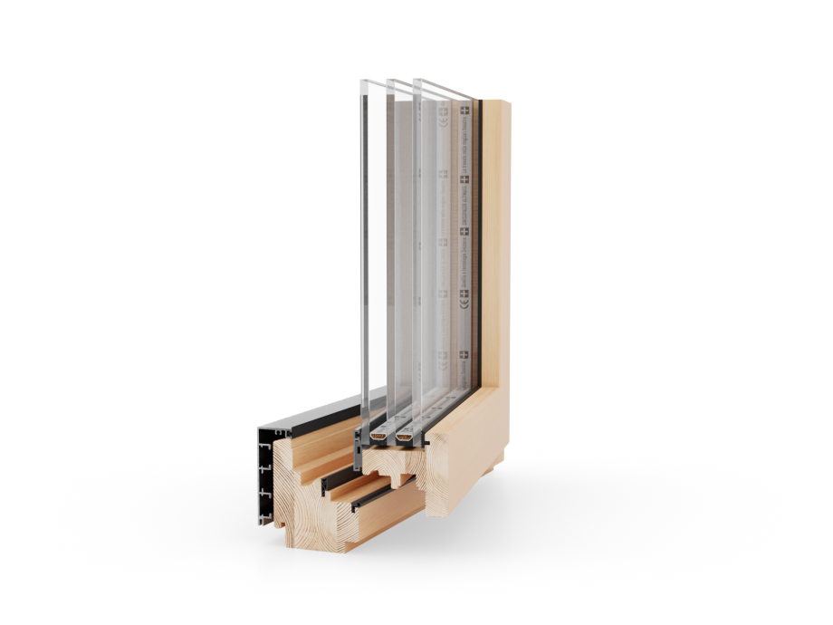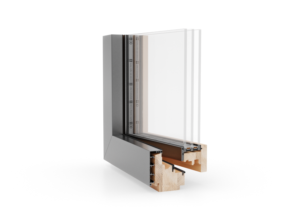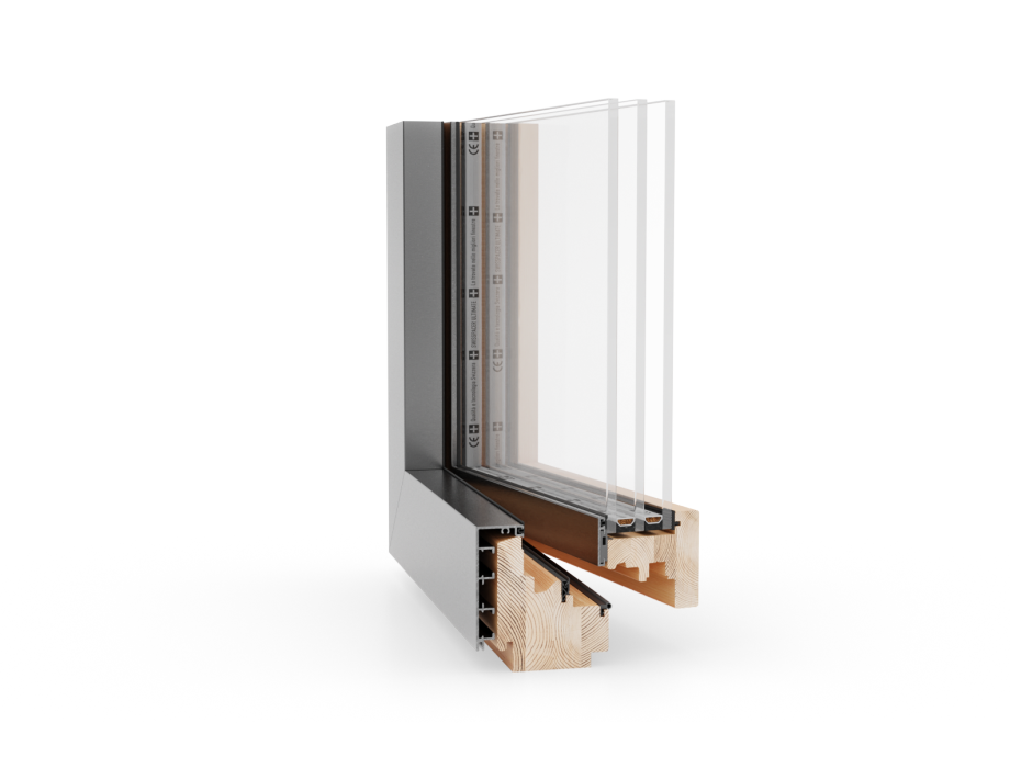The modern window system with the smallest construction depth of the profile from the whole Esperia Life line. Wood and aluminum profile and the ability to use "thicker" glass allow the energy efficiency of this profile.