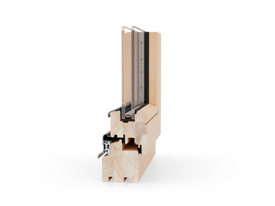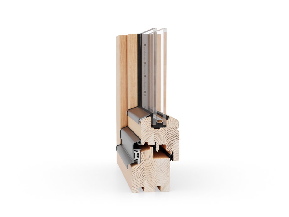 Naturo 68 window profiles are built from three layers of specially prepared wood, which ensures very good static parameters despite their light weight. The method of raw material preparation guarantees its durability, and a wide selection of finishing options makes it an extremely versatile proposition for various architectural styles.