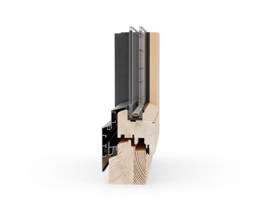 The slim and elegant Naturo 68 ALU system is distinguished by aluminum covers on the exterior side of the profiles.